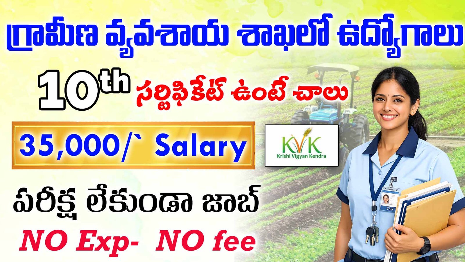 ఈ ICAR-KVK నోటిఫికేషన్ తక్కువ అర్హతలతో ప్రభుత్వ రంగంలో ఉద్యోగం పొందాలనుకునే వారికి మంచి అవకాశం. ముఖ్యంగా Driver మరియు Supporting Staff పోస్టులకు 10వ తరగతి అర్హతతోనే అప్లై చేయవచ్చు.